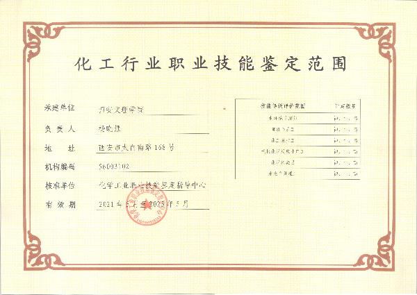 化工职业技能鉴定许可证(2021)