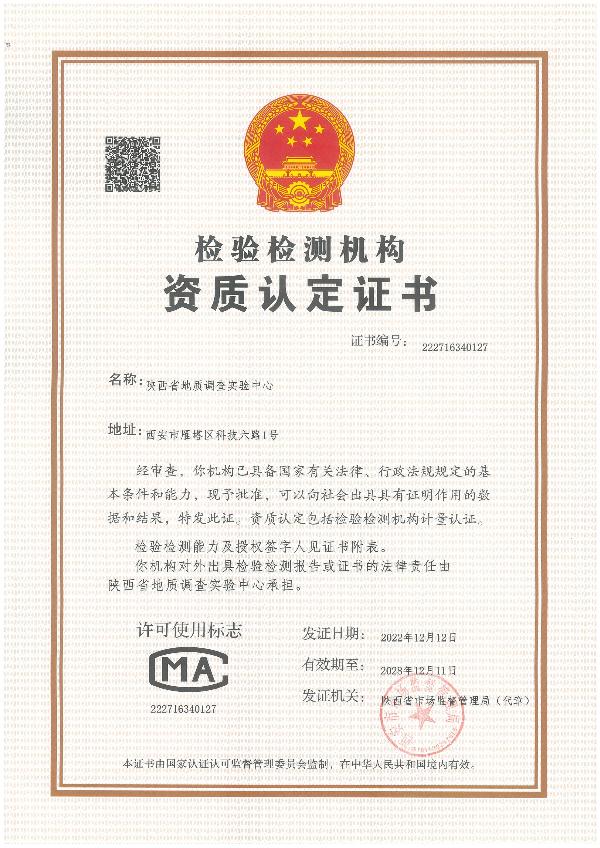 检测平台设备先进,技术力量雄厚,拥有实验测试场地2000平方米,各类仪器设备500余台套,价值达5000余万元。具有陕西省市场监督管理局颁发的CMA证书,是陕西省质量认证认可协会会员单位,检测能力涵盖水和废水、土壤和沉积物、区域地球化学等12个领域1000余项检测参数,能够满足地质、环境、农业、林业等多个领域样品检测的需要,先后为百于个项目提供技术支持和服务。(检验检测能力范围附表/wcm.files/upload/CMShg/202301/202301101142008.pdf)