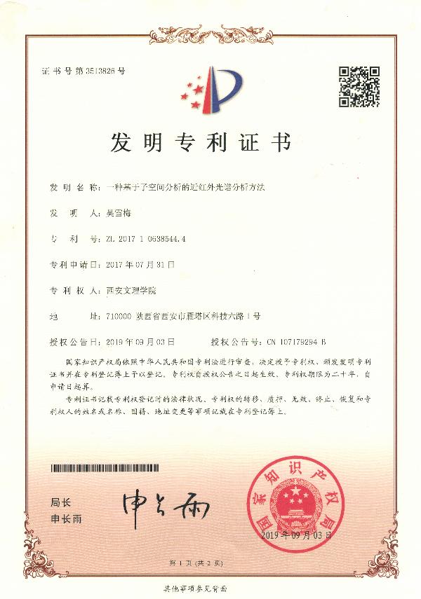 2019年吴雪梅副教授获国家授权发明专利