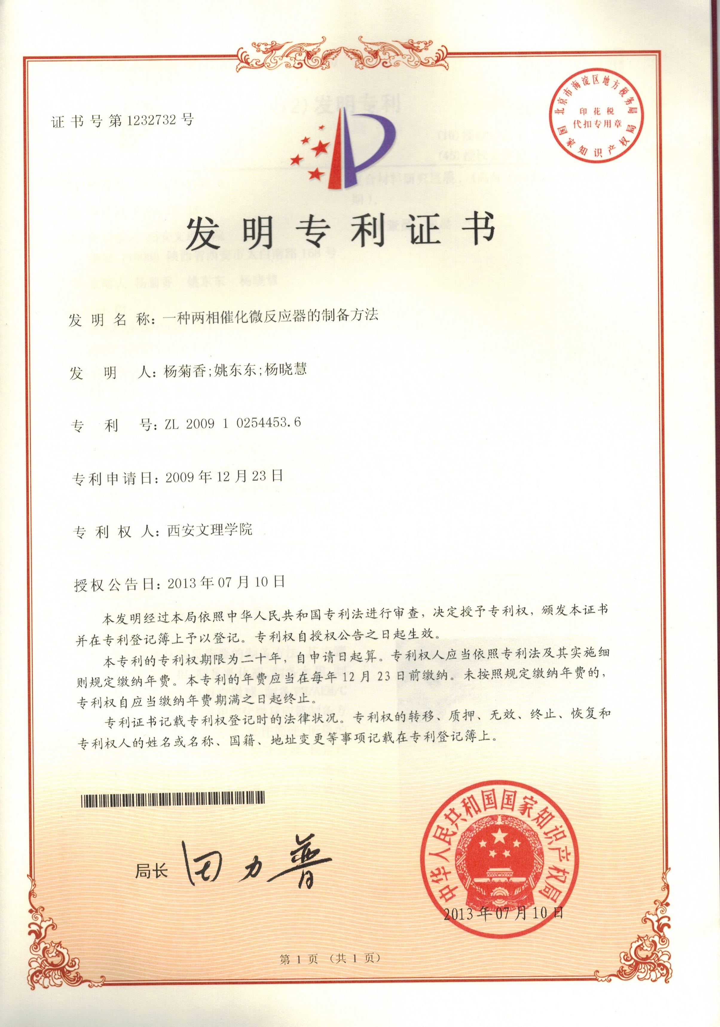 专利证书 杨菊香