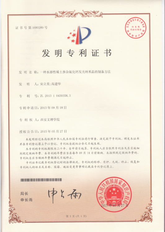 恭贺宋立美博士团队获国家授权发明专利