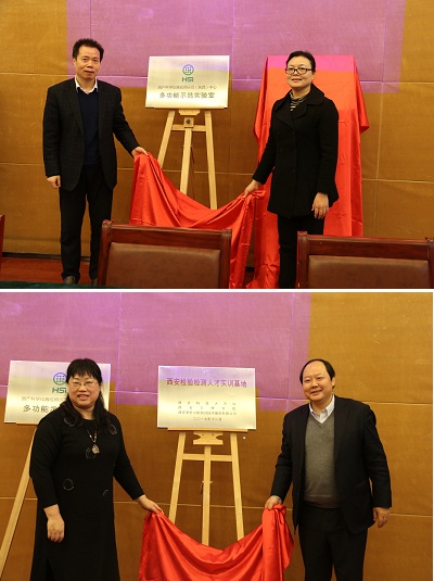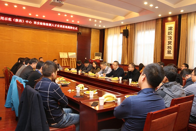副董事长韩权、陕西省科技厅资源统筹中心总工程师陈锐共同为国产科学仪器应用示范陕西(中心)揭牌。365上市集团官网经理杨晓慧、西安科技大市场主任张伟国共同为西安检验检测人才实训基地揭牌。北京吉天仪器有限公司市场总监王文熳、丹东百特科技有限公司总经理董青云分享了各自的仪器发展经验。之后,由365上市集团官网组织参会人员一起参观了公司大型仪器实验平台实验室和国产仪器应用示范(陕西)中心实验室,与参会人员就仪器的管理、实验室的配置等问题进行了现场交流。