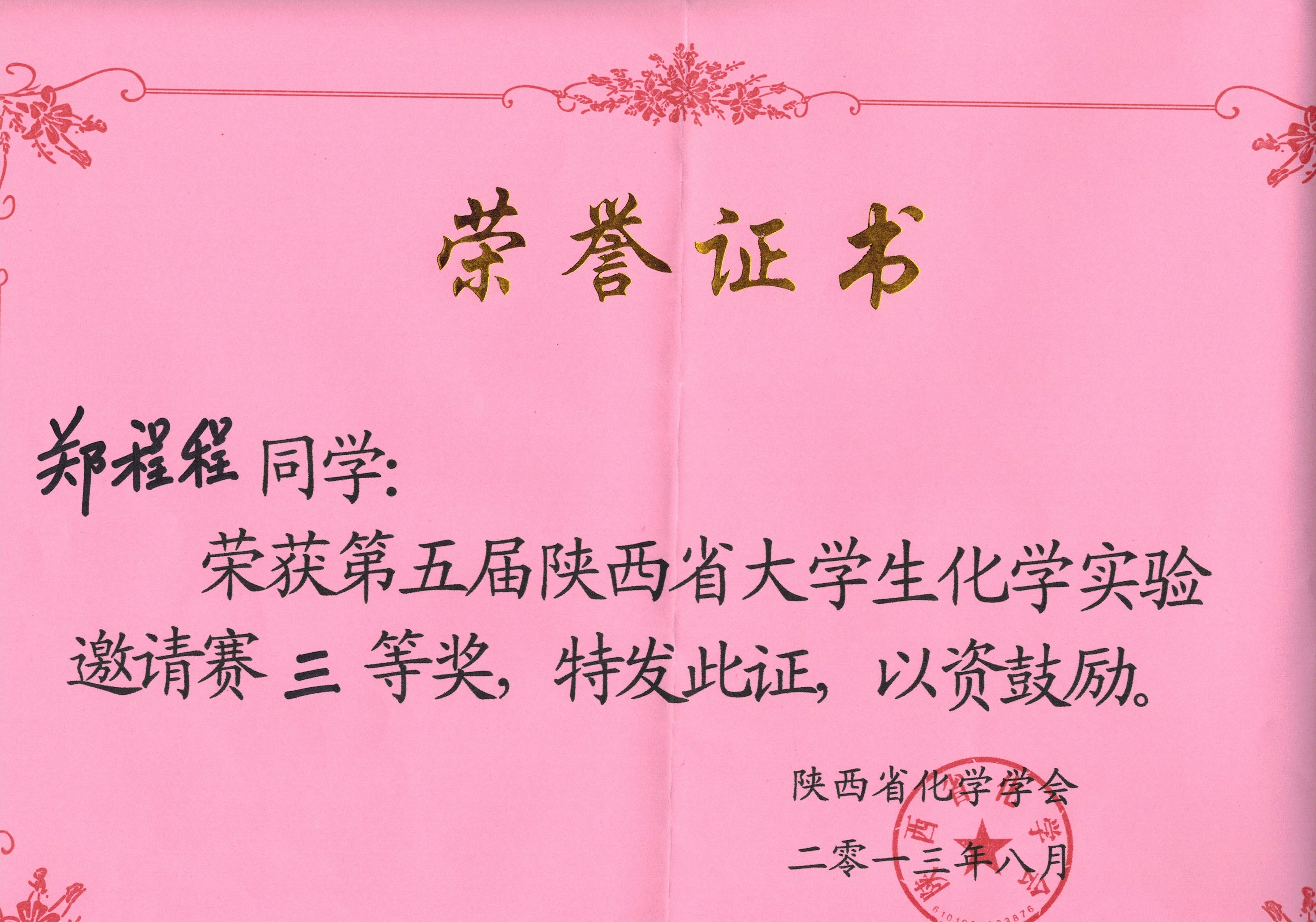 第五届陕西省老员工化学实验邀请赛三等奖