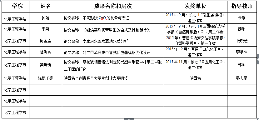 2015—2016学年第一学期员工第二课堂实践与创新成果奖励汇总表