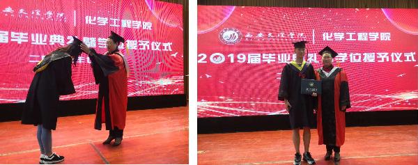 在学位授予仪式中,杨晓慧教授为2019届199名毕业生拨穗正冠、颁发学位证书、赠送纪念品并和毕业生一一合影,对每一位毕业生四年的辛苦付出予以肯定和勉励。