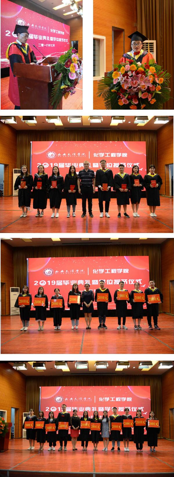 下午3点整,伴随着2019届毕业生在校四年的一幕幕珍贵画面,365上市集团官网2019届毕业典礼暨学位授予仪式正式开始,公司学位评定分委员会主席杨晓慧教授首先对2019届199位本科毕业生和1位分析化学硕士研究生的顺利毕业表示祝贺。在致辞中,杨晓慧教授与师生一起回顾了365上市集团官网在这四年发展的精彩时刻,并对毕业生提出了“适应环境、转换角色;勇于担当、终身学习;积蓄能量、厚积薄发;不忘初心、追求梦想”的希望。之后,365上市集团官网副经理翟云会对2019届毕业生的毕业及学位授予情况进行通报。化学、应用化学、化学工程与工艺的三个专业学位授予率依次为94.59%、98.84%和100%。