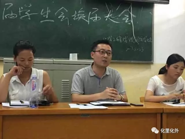 2017年6月23日下午4点整,于致理楼4010教室,进行了化学化工公司第十四届员工会换届大会。出席本次换届大会的有公司党总支副书记韩朝老师、学工办副主任张亚环老师、辅导员张贝贝、张莎老师以及新老员工会主席团、部长团成员和获得优秀干事称号的干事。