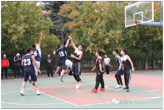 比赛正式开始,哨音刚落,由党总支书记田琛峰老师开球,赛况一开始就进入了白热化,双方队员各显身手,全程都以极高的专注度积极应战,犀利的抢断,精彩的上篮,引来了在场观众的一阵阵喝彩和掌声;学长队赛出了飒爽英姿,学弟们拼出了激情活力,整个赛况都在顺利进行中。
