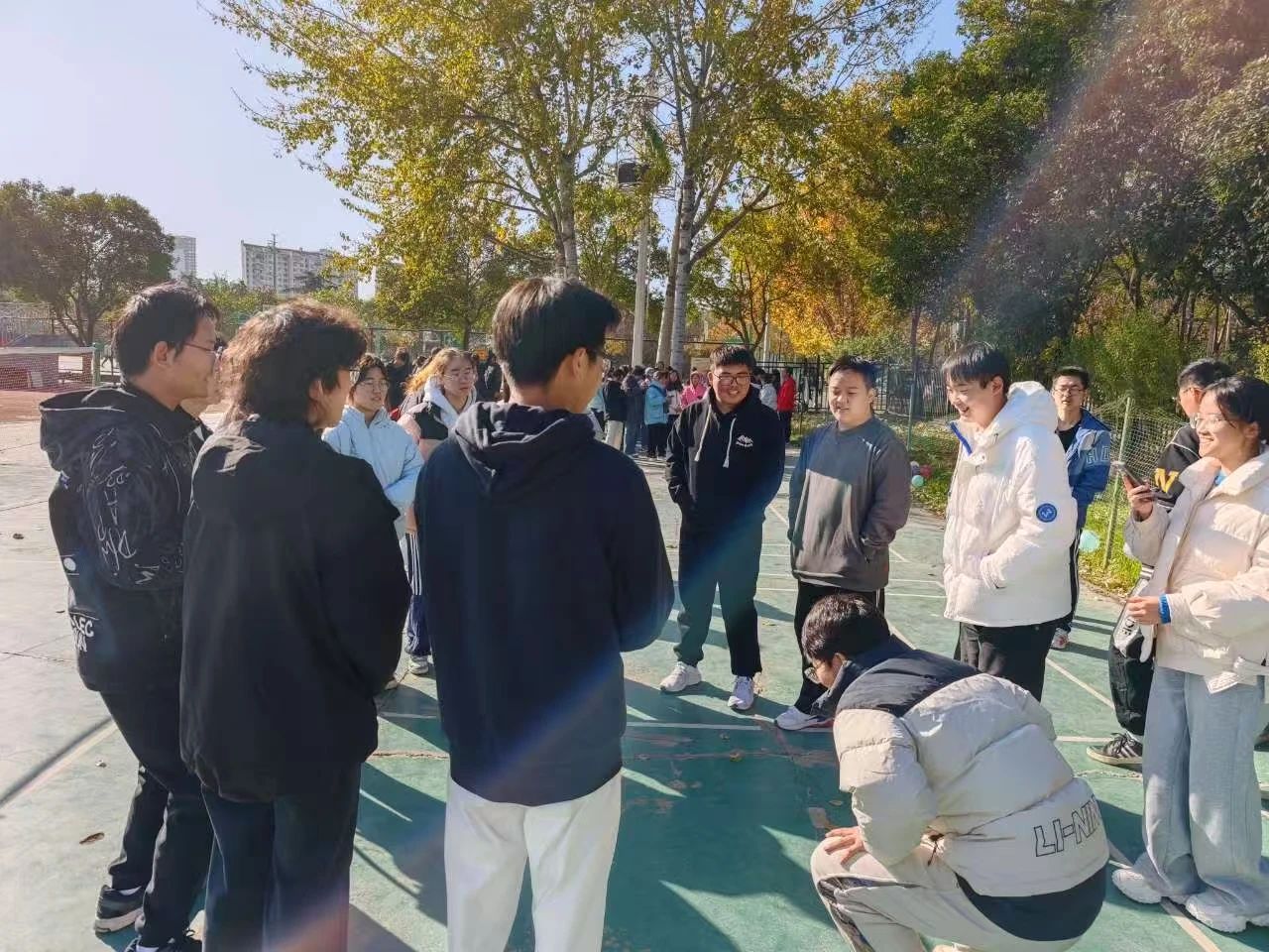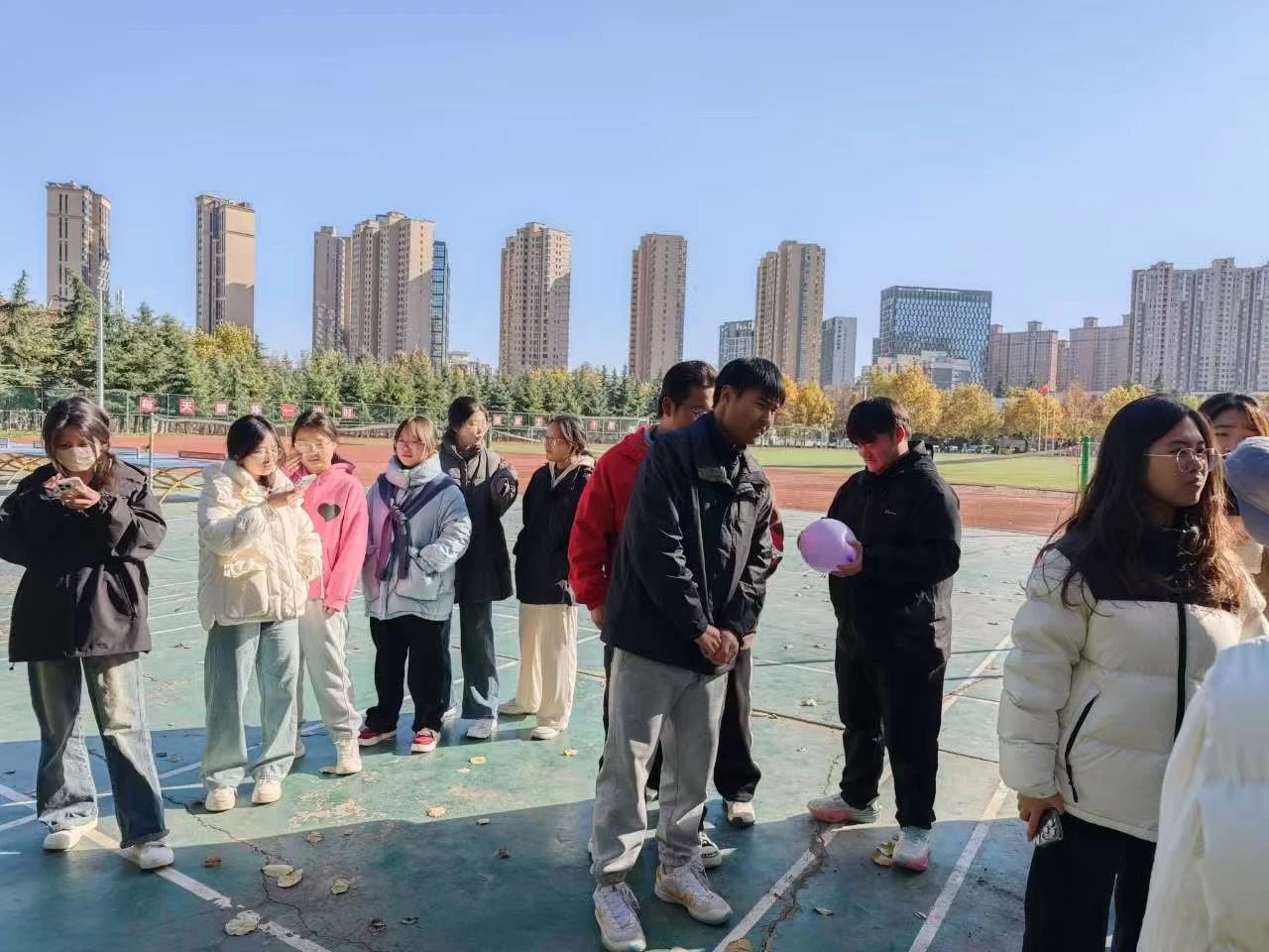 随着活动的火热进行,镜头已经切换到第三个项目——打气球。同学们拿出了前所未有的高涨情绪,每位同学在老师和部长的指导下,有序又欢快地完成了比赛。