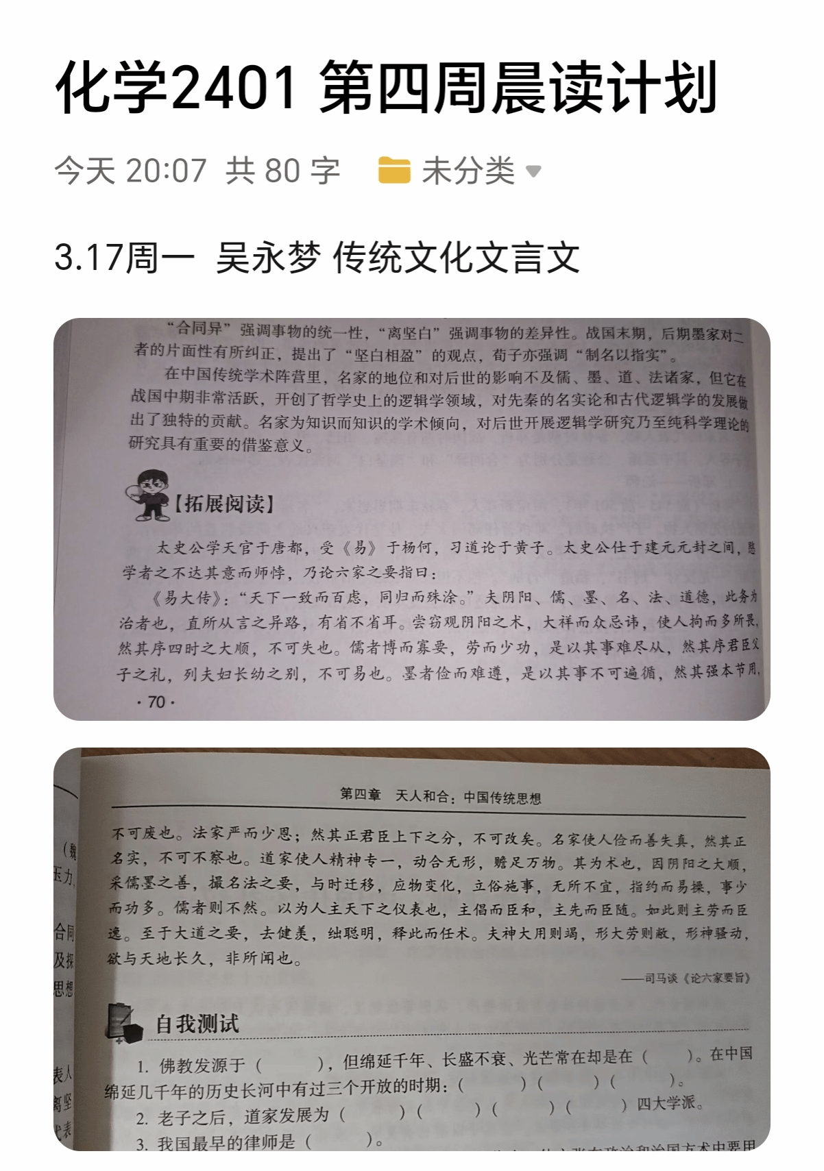 一、优秀晨读计划、晨读内容展示