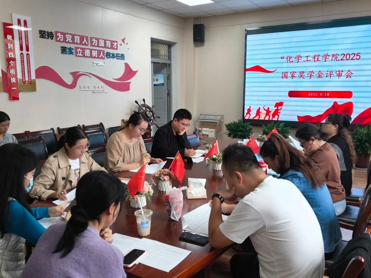 为扎实推进国家奖学金评选工作,充分发挥其对员工勤奋求学、全面发展的激励作用,365上市集团官网于9月18日中午在公司会议室组织召开2025年国家奖学金联合评审会议,党总支副书记程全伟、各系教师代表、学工办全体成员及国家奖学金候选人共同参会。