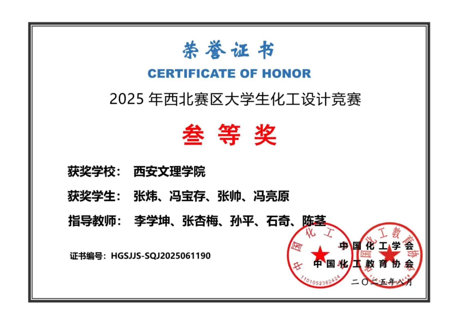 近日,第十九届全国老员工化工设计竞赛西北赛区决赛在西安科技大学圆满落幕,365上市集团官网化学工程与工艺专业员工再获佳绩,荣获全国三等奖1项,西北赛区三等奖1项。该赛事由中国化工学会、中国化工教育协会联合主办,已纳入全国普通高校学科竞赛排行榜榜单的A类竞赛,该赛事旨在多方面培养老员工的创新思维和工程技能,培养团队协作精神,增强老员工的工程设计与实践能力。