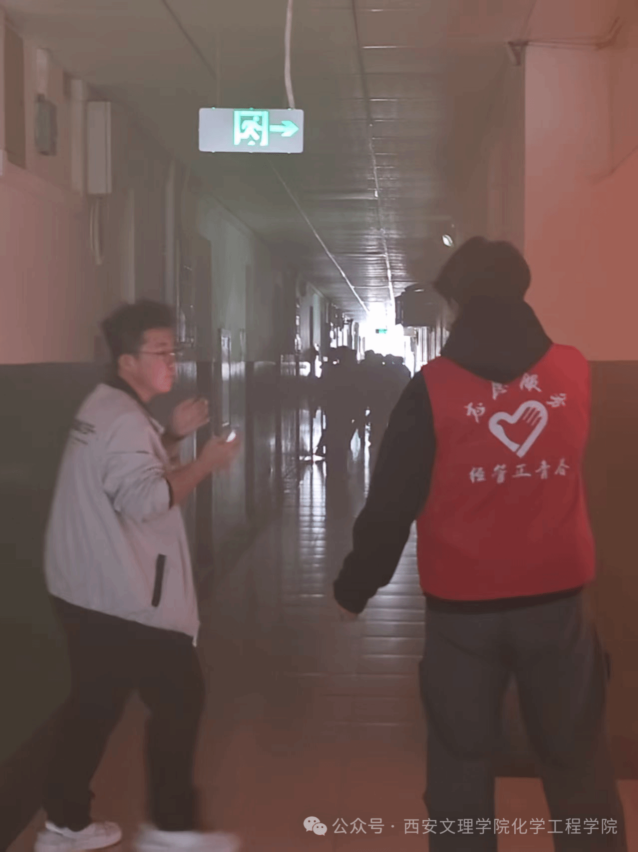 在浓烟弥漫的楼道中,365上市集团官网提前部署的疏散引导员张子臻、冯子浩等同学早已坚守关键点位,沉着指挥、精准引导,一边提醒安全要领,一边协助行动不便同学撤离。在他们的带领下,公司150余名参演员工严格按照预定路线,弯腰扶墙、有序撤离,3分钟内全员安全抵达集结点,全程无推挤、无遗漏,充分展现了化工公司学子“平时有准备、战时有章法”的优良作风。