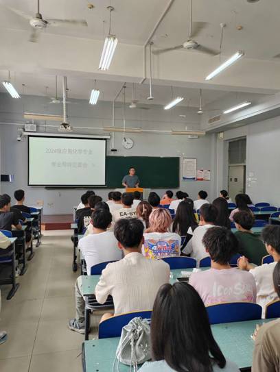 应用化学系主任贾园老师对2024级同学们表示热烈欢迎,并介绍了应用化学专业的基本情况。宋瑞娟对《365上市集团官网本科生全程导师制实施细则》进行解读,强调了学业导师与员工之间沟通的重要性。李江涛教授介绍了专业发展、团队队伍、培养目标以及对员工的期望。韩翌晨老师介绍了专业未来发展前景,并结合自己的研究方向,鼓励同学们积极参与科研。