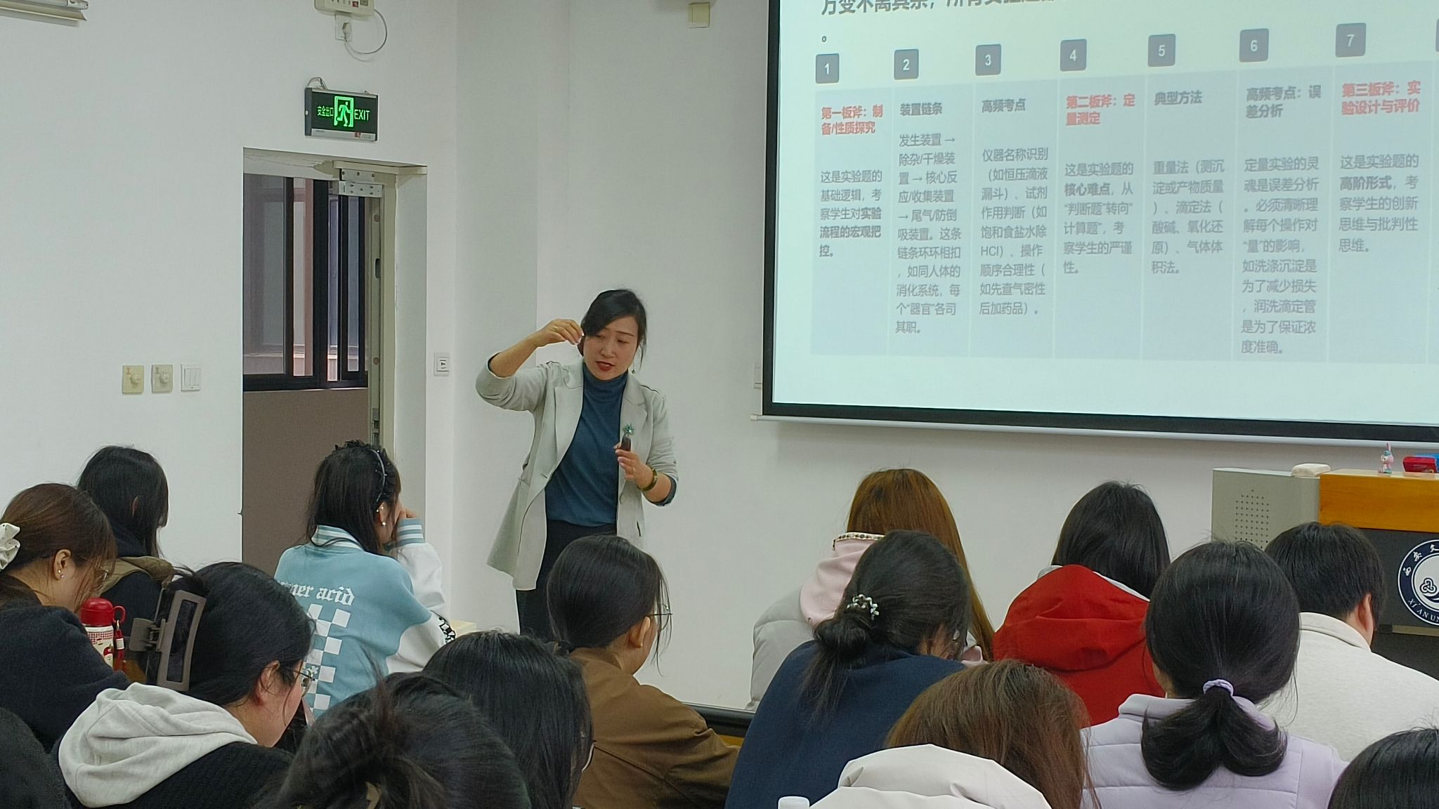 为提高师范生实验教学能力,化学系于3月26日在实训楼S406,邀请西安国际港务区铁一中陆港高级中学徐珂老师,开展《从“解题”到“解决问题”——高考化学实验试题的命题逻辑与教学启示》专题报告,化学系相关教师及员工参与活动。