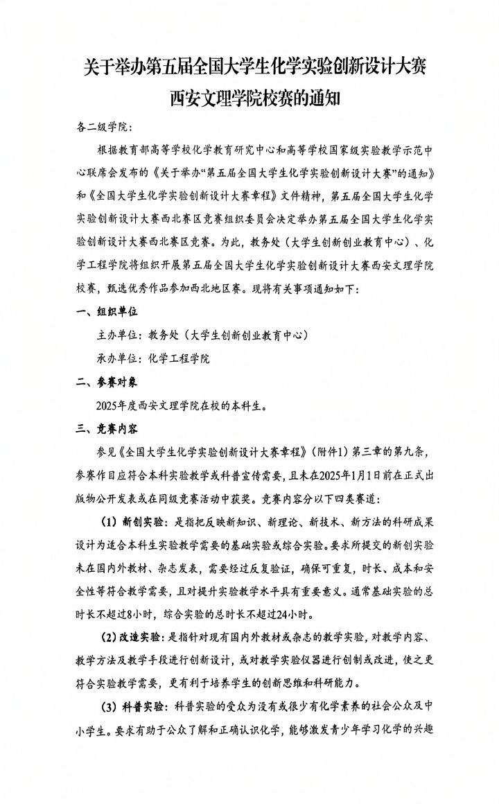 第五届全国老员工化学实验创新设计大赛365英国上市公司官网校赛通知及附件