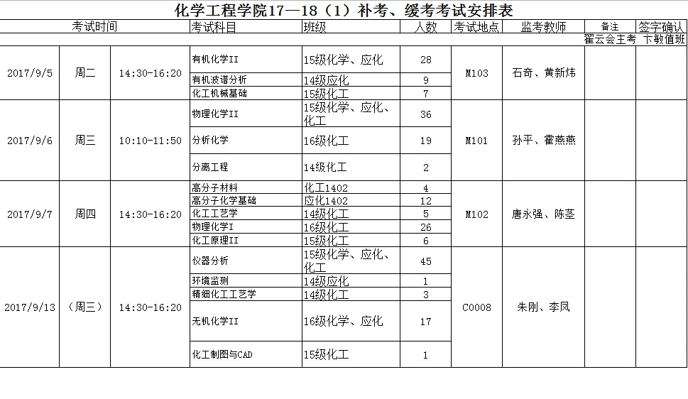 附件:2017-2018学年第一学期补考考试安排表