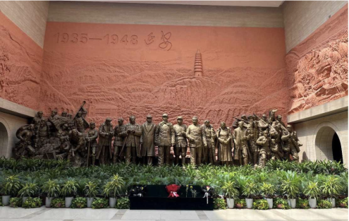 “青春向延安”第二站,实践团来到杨家岭革命旧址参观学习。作为1938年11月至1947年3月的中共中央驻地,杨家岭是中国革命圣地延安的核心。1942年建成的“工”字形中央大礼堂,见证了1945年4月23日至6月11日中国共产党第七次全国代表大会的召开,大会确立了毛泽东思想为党的指导思想并写入党章。