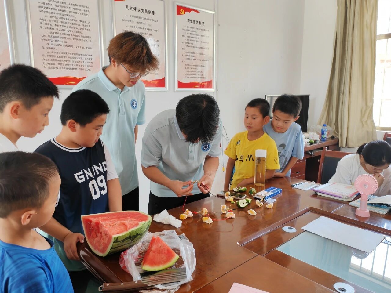 最后一天,实践团聚焦学业帮扶,耐心辅导孩子们的暑假作业,针对薄弱环节进行预习指导。课间,成员们化身“学长学姐”,生动讲述老员工活点滴,科普化学学科知识,为孩子们勾勒出未来学习的图景,激发他们的求知欲。