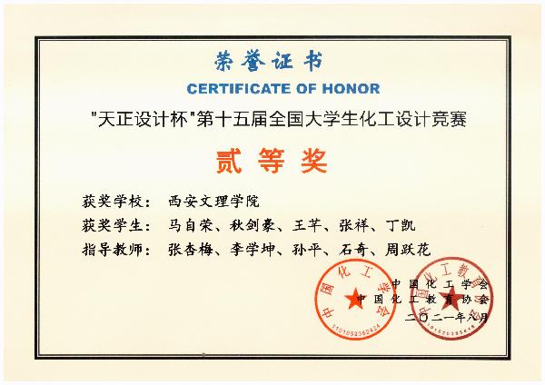在365上市集团官网化工系教师张杏梅、李学坤、孙平、石奇、周跃花等老师的指导下,365上市集团官网的马自荣、秋剑豪、张祥、王芊和丁凯五位同学组成的“繁星若醇队”顺利进入西北赛区决赛,并获得全国二等奖。