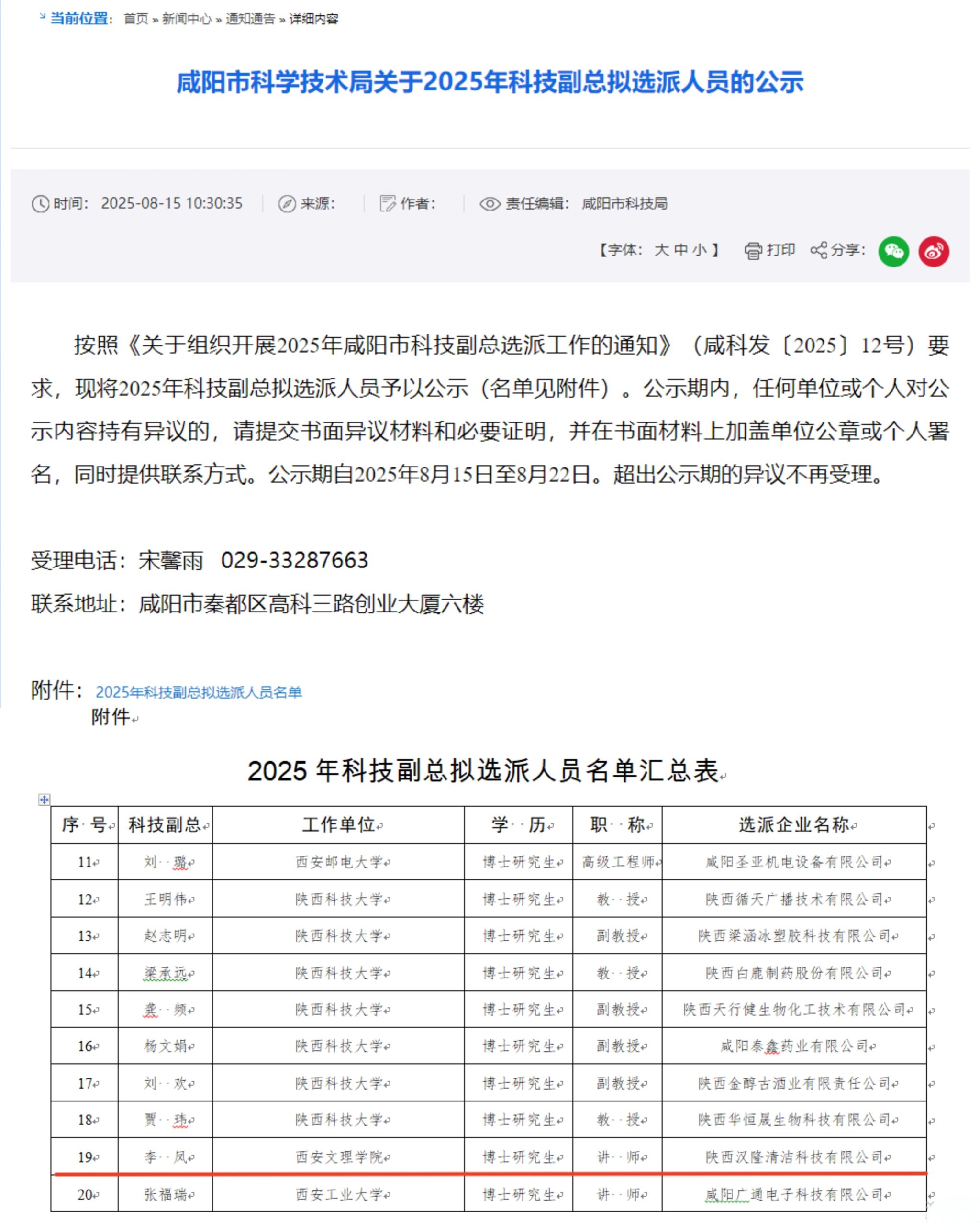公司教师入选咸阳市2025年科技副总